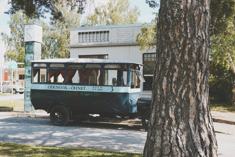 Wir kommen mit dem Fahrer des historischen Busses ins Gespräch. Mine kann ihm die wichtigsten Fragen stellen: Er hat noch keinen Bären gesehen, aber schon einmal einen Unfall mit einem Elch gehabt. Seiner Meinung nach haben wir das Jamtli Land besichtigt und somit das Wichtigste in Schweden gesehen. Aus der Region sollten wir den Schmierkäse probieren, der ein wenig nach Karamell schmeckt, aber vor allem sollten wir den Tag genießen, denn in Schweden ist der Sommer der schönste Tag im Jahr.