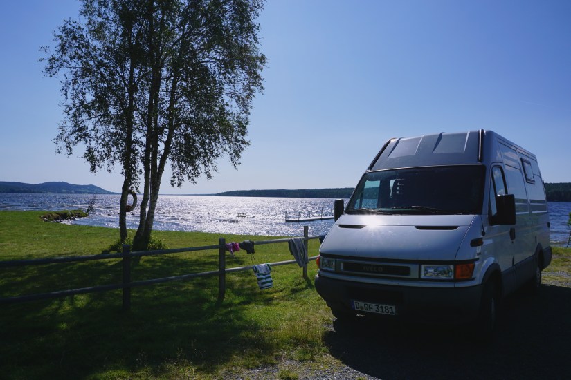 So eine Wanderung erfordert natürlich eine Dusche, wir brauchten also einen Stellplatz mit See, Fluss oder Ähnlichem und fanden Sie am Alsensjön See. Der kalte Wind war fies beim Baden, trocknete unsere frisch gewaschene Wäsche aber im Nu.