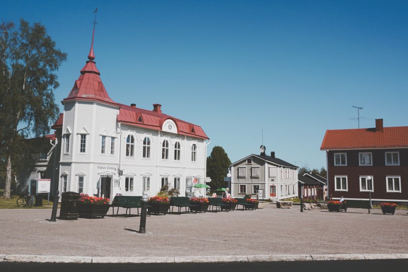 Sind wir im Süden vor den deutschen Touristen geflohen, umzingeln uns im Norden nun die schwedischen Urlauber. Insbesondere in kleinen Urlaubsdomizilen braucht es daher ein wenig Raffinesse, um einen der begehrten Stellplätze zu ergattern. So schliefen wir die Nacht kurz vor Luleå auf einem Feld, um am nächsten Morgen zur üblichen Abreisezeit der Camper am Stadthafen einzutreffen. Mit Erfolg! Wir parken tatsächlich in erster Reihe mit Wasserblick im Stadthafen, unweit der Innenstadt und mit Bademöglichkeit. Diese ist notwendiger als wir erwartet hatten. Vor unserer Reise waren wir so mit der Auflösung unserer Wohnung und der Fertigstellung des Busses beschäftigt, dass wenig Zeit für Reiserecherchen blieb, sonst hätten wir vielleicht gewusst, dass wir gerade in eines der Sommerurlaubsziele der Schweden gereist waren. Der Norden des Bottnischen Meeresbusens zählt zu den wärmsten Regionen Schwedens und so hatten wir unerwartete 30 Grad. Die Tour durch Luleå war schnell beendet, klassische Touristenstadt mit zahlreichen Einkaufsmöglichkeiten. Wenn wir auf Reisen konsumieren, dann sind es jedoch meistens Lebensmittel. Schweden hatte uns mit seinen Törtchen bereits überzeugt und daher zählt zu unseren Luleå Highlights die Konditorei Börje Olsson . Köstlich!