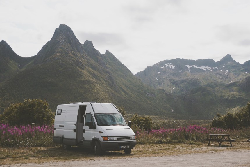 Die knappe 9km lange Wanderroute macht Lust auf mehr. Wir steigern den Schwierigkeitsgrad und fahren in die Lyngenalps. Die etwa 90km lange und 15-20km breite Gebirgskette ist touristisch bisher wenig erschlossen und lockt nur einige Wanderer in die Region. Wir finden im Internet einige Tagestouren zur Auswahl, unter denen jedoch eine klar hervorsticht – die Route zu einem besonders blauen See, dem Blaisvatnet. Um schon früh starten zu können, stellen wir Frieda auch hier am Wandererparkplatz über Nacht ab. Diese sind grundsätzlich ein guter Ort für eine einfache Übernachtung. Oft gibt es Mülleimer, manchmal aber auch eine Plumps Toilette, selten so eine luxuriöse wie hier. Sie riecht nach Reiniger und Holz, hat einen Teppich und sogar Desinfektionsmittel.