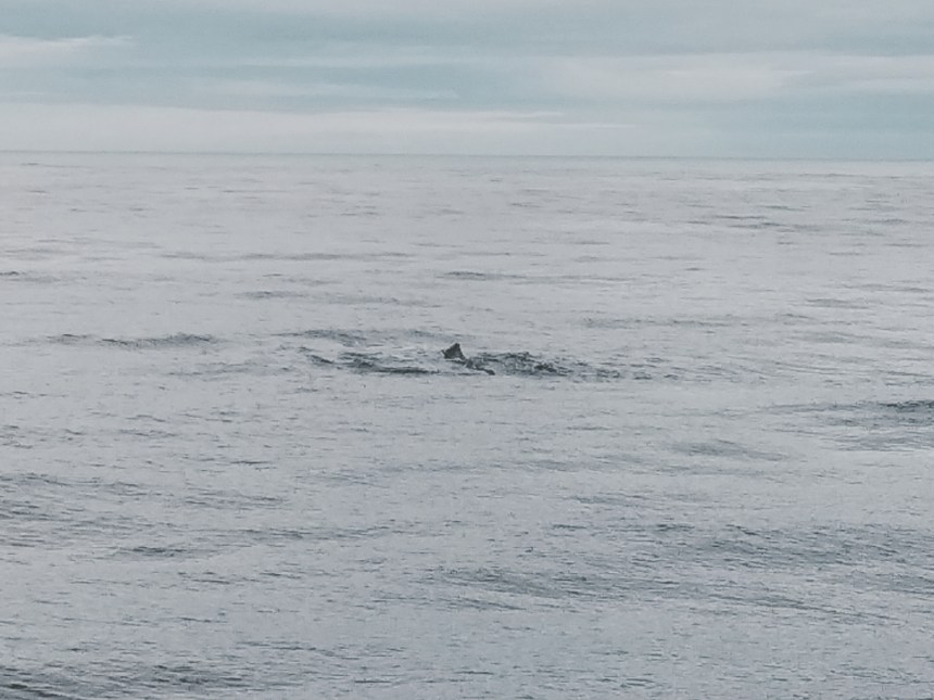 Plötzlich ist ein erstes Raunen auf der MS Reine zu hören. Wow! Da ist er – ein Zwergwal am Horizont. Der durchaus irreführende Name beschreibt einen bis zu 10 m langen Wal, der auch noch in der Entfernung gut sicherbar ist. Keine 5 Minuten später traut sich ein Zweiter näher an unser Schiff heran. Er zählt zu den flinkeren Walen und ist nach zwei kurzen Schwimmbewegungen auch schon wieder abgetaucht. Nach dem berauschenden Gefühl tatsächlich einen Wal gesehen zu haben, folgt der gedankliche Dämpfer. Das war es. Wal gesehen, Walgarantier erfüllt, ab nach Hause.