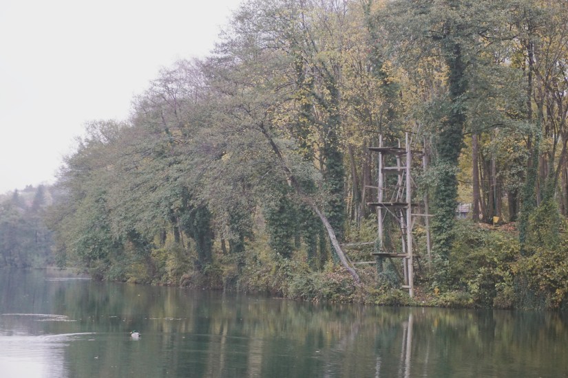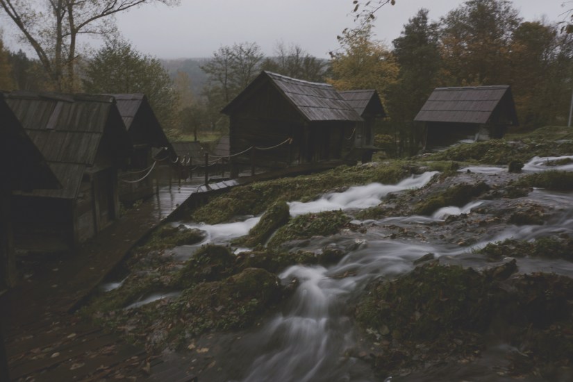 Auf dem Weg zu unserem Schlafplatz legen wir noch einen schnellen Stopp beim Bäcker ein. Dunkles Brot suchen wir hier vergebens. Wir kaufen einen Brötchenkranz und teilen uns einen Burec. Lecker wie immer! Entlang der Pliva gibt es unzählige Parkbuchten. Keine ist belegt. Wir können uns gar nicht entscheiden, wo wir heute übernachten. Auf einem kleinen Schotterplatz halten wir. Noch ein wenig zaghaft, ob wir hier wirklich campen wollen und ob das im Dunkeln nicht zu gruselig ist, nutzen wir das Tageslicht und spazieren den Fluss aufwärts. Am Ende gelangen wir in einen schön angelegten Park mit einem Sprungturm aus Holz, kleinen Brücken und traditionellen Holzhütten. Mehr Touristeninformationen gibt es leider nicht, also genießen wir einfach den Anblick. Der Parkplatz hier sieht irgendwie einladender aus. Wir parken noch einmal um und können diese Nacht mal wieder mit dem Rauschen von Wasserfällen einschlafen. Spätestens als sich abends ein zweiter, französischer Camper zu uns gesellt schlafen wir beruhigt und entspannt ein.