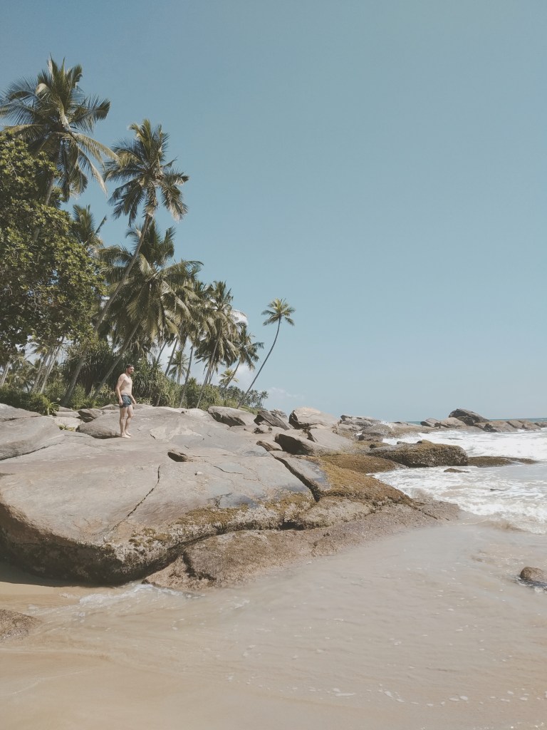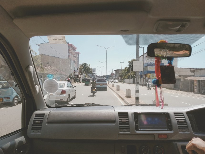 Unser Gastgeber in Unawatuna organisiert uns einen Fahrer, der uns für knapp 30 Euro im klimatisierten Auto nach Tangalle bringt. Wir betrachten es als Weihnachtsgeschenk an uns selbst. Eine Zugverbindung gibt es nicht, das TukTuk wäre nur unwesentlich preiswerter gewesen und der Bus wäre zwar günstig, dafür aber trotz der 30 Grad auch gefüllt wie eine Ölsardinendose. Und so düst unserer Fahrer im sichtlich in die Jahre gekommenen Kleinbus immer die Straße am Meer entlang. Sein Telefon klingelt im Minutentakt, es ist Heiligabend, dank der Touristen gibt es Weihnachten viel zu tun. Knapp 2 Stunden dauert die Fahrt, wir sehen viel, aber die Kurven nehmen nicht ab. Der Kleinbus ist unglücklich höher gelegt, Jasmin wird das erste Mal in ihrem Leben seekrank beim Autofahren. Ein Reisekaugummi rettet die restliche Fahrt. Ein wenig erschöpft und ehrlicherweise auch leicht überrascht erreichen wir unsere Unterkunft in Tangalle.