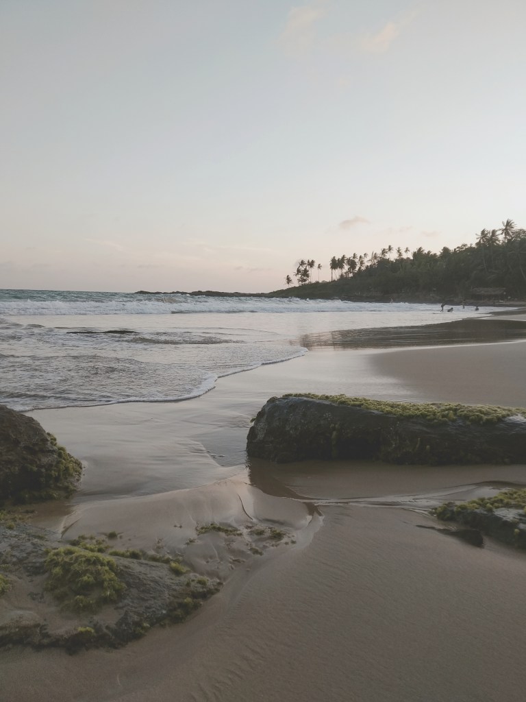 Ein Blick auf die schönsten Strände Sri Lankas soll die Stimmung heben. Nur ein paar Hundert Meter die Straße entlang, führt eine kleine abbiegende Gasse Richtung Meer. Spazierende Touristen können die Einheimischen nur schwer ertragen und so wird uns alle paar Meter ein TukTuk angeboten. Danke, wir laufen. Die Meeresbucht wirkt klein und geschützt. Eine Handvoll Touristen liegen auf den Sonnenliegen, die anderen sitzen auf den Steinen und genießen die untergehende Sonne. Ein guter Ort, um Pläne für die nächsten Tage zu schmieden. Wir wollen surfen.