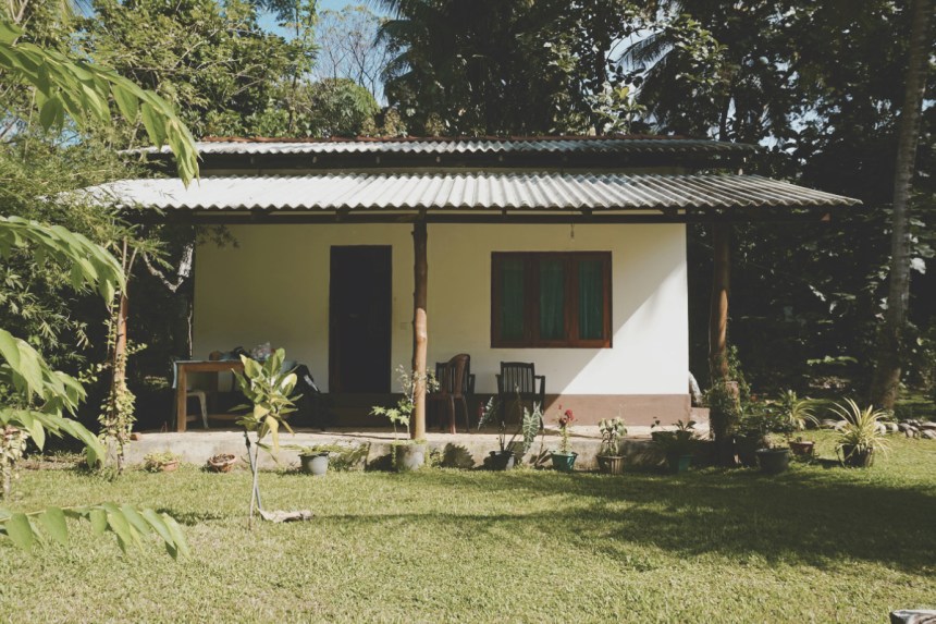 Die Unterkunft ist einfach und günstig. Lesen wir die Rezensionen, ärgern wir uns oft über manche Touristen. Ja, die Unterkunft könnte sauberer sein. Auf der anderen Seite liegt sie aber eben auch im Dschungel. Wasser ist auf Sri Lanka nicht in Unmengen verfügbar. Bei Wassernot, werden abwechselnd die Versorgungsrohre geschlossen, sodass die einzelnen Bereiche der Stadt nacheinander Wasser erhalten. Daher haben alle Häuser einen großen Wassertank auf dem Dach stehen, um auch in solchen Zeiten versorgt zu sein. Es krabbeln Käfer durchs Badezimmer und offensichtlich dient der Schlafraum als Ameisenautobahn. Dafür ist das Bett Tierfrei, die Bettwäsche hat zwar ein paar Flecken, riecht aber frisch gewaschen. Wir haben gesehen, dass die Eltern die Wäsche bei sich im Garten hängen haben und bereits in Unawatuna gelernt, dass hier noch von Hand gewaschen wird. Ihre Kleidung waschen auf dem Land noch genug Einheimische im Flussbett, ansonsten scheint die singalesische Wäschemethode mit einem Stock gestampft zu werden, dass dabei nicht alle Flecken raus gehen scheint logisch. Für solche Fälle haben wir einfach einen dünnen Schlafsack mit. Für zwei Nächte finden wir es voll okay, verbringen wir eh den ganzen Tag im Garten und sind unterwegs.