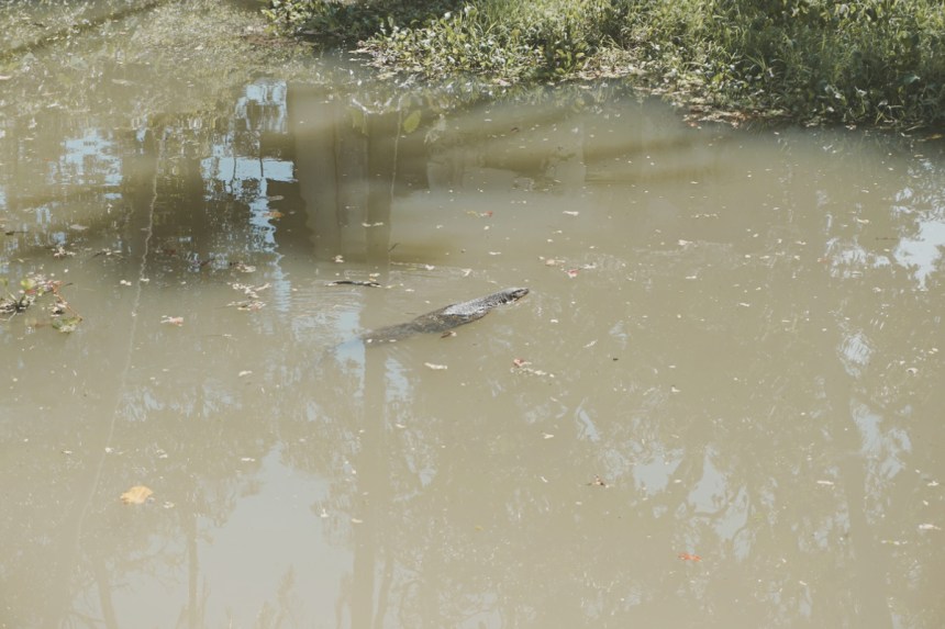 Den Höhepunkt unserer Reise erreichen wir, als wir an einem landschaftlich schönen See anhalten. Der Fahrer weist in Richtung Baum. Was will er uns nur zeigen? Ja, hübsche Bäume, aber irgendetwas anderes meint er. Plötzlich quietscht Jasmin. Was sie die ganze Zeit für trockene Blätter oder Blüten gehalten haben, sind große schwarze Fledermäuse. Wir sind völlig aus dem Häuschen. Der Fahrer fährt an Obst- und Fischständen vorbei und biegt in eine Straße Richtung See. Mit glänzenden Augen stehen wir unter den Bäumen. Durch das Wasser schwimmen zwei Warane, über uns drehen vereinzelte Fledermäuse ihre Kreise und zeigen sich in ihrer ganzen Pracht. Die Sonne schimmert rot durch ihre Flügel. In der Ferne versuchen Angler die Fische aufzuscheuchen. Wahnsinn!