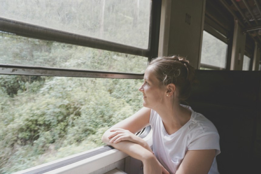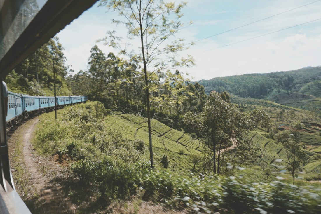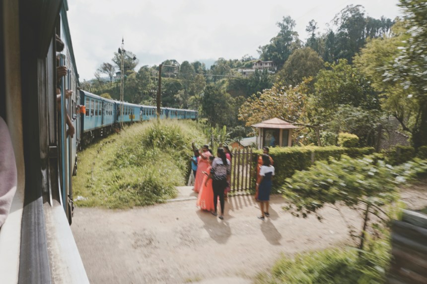 In der Tat macht es Spaß. Die Aussicht aus dem Zug ist unfassbar schön. Gefühlt fahren wir die ersten Stunden die Gebirgspässe entlang und oft können wir uns gar nicht entscheiden, ob wir links oder rechts hinausschauen möchten. Teeplantagen, Täler, winkende Menschen am Straßenrand. Auf Bilderbuchmotive folgen weitere Bilderbuchmotive. Mit 20km/h ruckeln wir gemütlich durch die Landschaft. Gestört werden diese lediglich dann und wann von unseren gegenübersitzenden Mitfahrern. Eine Amerikanerin und eine Singhalesin, offenbar ein junges Paar, sind ebenfalls von der Landschaft begeistert. Sie versuchen jeden Moment mit ihrem unnötig großen Objektiv zu dokumentieren. Es gibt nur wenig Momente ohne Klicken. Sei es drum.