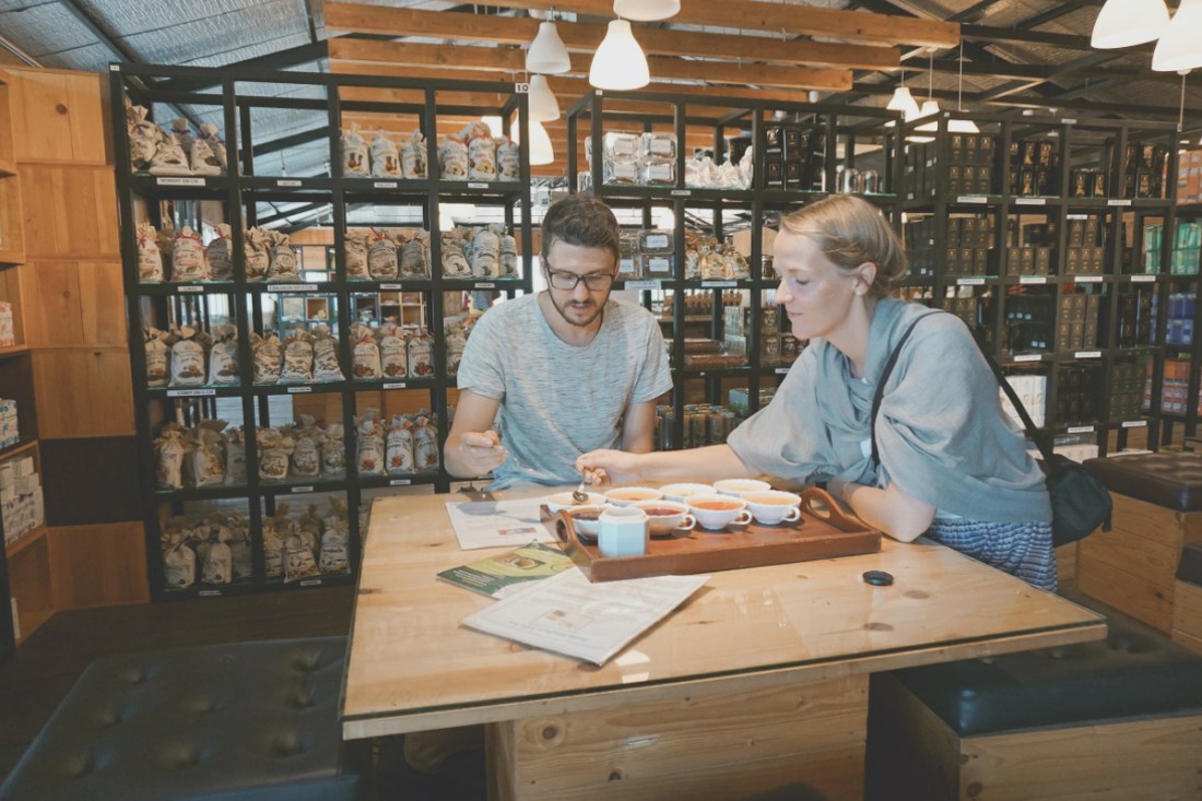 Ist die Führung kostenfrei, hat man hier aber auch nichts dagegen, wenn die Besucher etwas Tee als Andenken mitnehmen. Aus der Verkostung wird eine Tee-Tupperwaren-Party. Wir schnüffeln an vielen weiteren Sorten Früchtetee, die nahezu alle unfassbar gut riechen. Tatsächlich ist dies ein schönes Mitbringsel, die Backpacks bieten jedoch nur wenig Platz. Die Dame der Teefabrik möchte das einfach nicht glauben. Würde doch eine kleine Packung von dem weißen Tee für zarte 50 Euro in den Rucksack sicher noch reinpassen. Uns gelingt es die Fabrik mit nur einer statt aus dem Sonderangebot zwei Packungen unseres favorisierten Schwarztees zu verlassen.