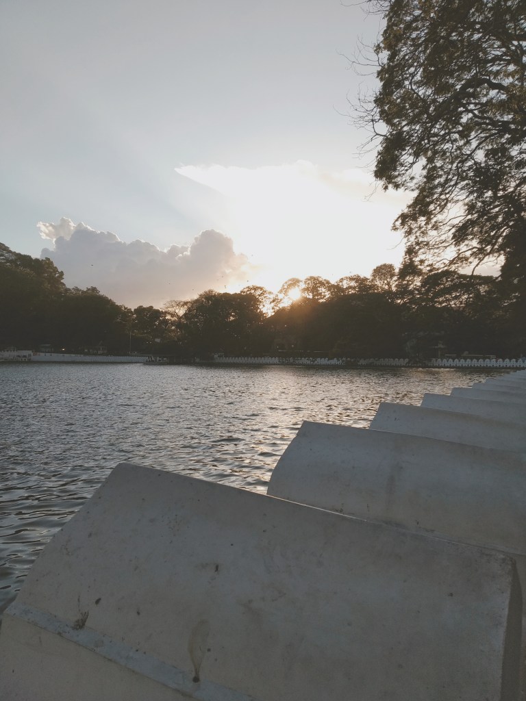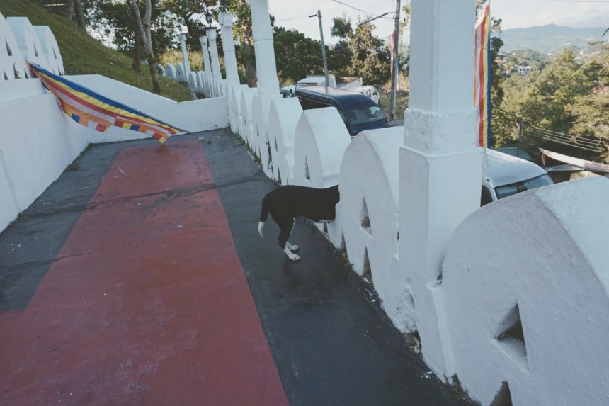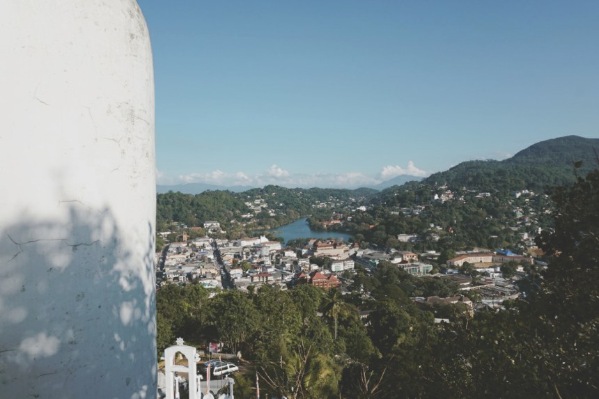 Mit gefühltem Magen erkunden wir anschließend Kandy. Wir schlendern am Kandy See entlang, obwohl eine gemütliche Spaziergeh-Stimmung nicht so recht aufkommen möchte. Der See riecht muffig, die ursprüngliche Farbe des Gehweges lässt sich, dank Tauben- und Entenkot nur noch erahnen, über uns kreischen die Vögel. Schön ist anders. Direkt neben dem Kandy See liegt der berühmte Zahntempel. Dieser erlangte Berühmtheit, da dort einer von Buddhas Zähnen ausgestellt sein soll. Sein soll, weil dieser in einer nicht einsehbaren Holz-Box liegt. Es gibt Gerüchte, dass die Portugiesen den Zahn schon im 16. Jahrhundert mit in die Heimat genommen oder sogar zerstört haben. Da der Tempel aussieht wie alle anderen auch, auf Grund der Box allerdings stattliche 15 Euro Eintritt kostet, ist dieser Punkt von unserer Sightseeing-Tour gestrichen. Wir folgen einer weiteren Empfehlung Johns und besuchen eine Rooftop-Bar mit Backpacker Klientel. Zeitlich passend zum Sonnenuntergang genießen wir bei einem kühlen Lion-Bier und einer Sprite einen wunderbaren Blick auf die Stadt mit darüber kreisenden Fledermäusen.