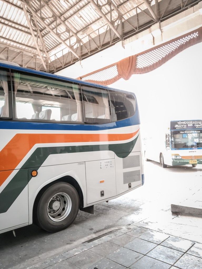 Im Bus bekommen wir einen der letzten Doppelsitze, alternativ gäbe es nur Dreier Sitzplatzreihen, was nur problematisch ist, sobald ein Europäer darauf Platz nimmt. Asiaten sind einfach schmaler, keiner der Sitze ist breit genug für uns und so quetschen wir uns wenigstens nur zweit in die Reihe. Dominiks linker Arm muss aus dem Fenster hängen, Jasmins Pobacke hängt halb im Gang. Unsere Backpacks werden einfach im hinteren Türbereich platziert, der Bus ist voll, nur eine Handvoll Touristen, der Rest sind Einheimische. Wir fahren ein paar Hundertmeter, bevor wir von dem gerade eingenommenen Geld der Bustickets erst einmal tanken. Den Touristen steht die Panik ins Gesicht geschrieben. Jasmin hat bereits sämtliche Schichten übergezogen, die sie im oberen Bereich des Backpacks finden konnte, inklusive Windbreaker und Wollmütze, denn die Klimaanlage in diesem Bus sind zwei offene Türen und komplett offene Fenster. Der Franzose in der letzten Reihe nutzt die Pause und fleht die Busbegleiterin an, zumindest die letzte Tür zu schließen. Die Einheimischen verfallen in Gelächter. Für circa 10 Minuten werden beide Türen geschlossen, dann stoppen wir erneut, der nächste Fahrgast steigt ein, beide Türen sind offen. Die Mittagshitze brennt, im Bus zieht es.