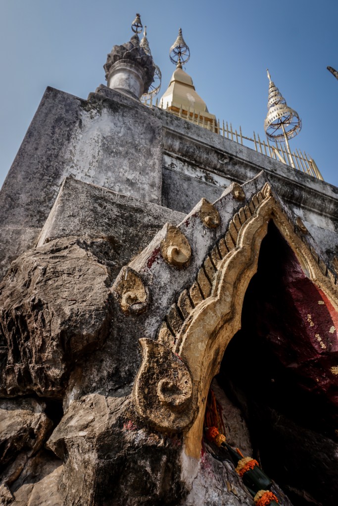 Wir genießen noch einen Tag unser sauberes Hotelzimmer und die kleine Terrasse, bevor wir uns Richtung Grenze Laos aufmachen. Eigentlich wollten wir schon früher abreisen, das chinesische Neujahr hat aber auch die vietnamesische Einwanderungsbehörde lahmgelegt. Relativ problemlos hätten wir hier gut und gerne noch weitere Tage verbringen können. Die schlechten Luftverhältnisse in der Stadt lindern den Abschiedsschmerz jedoch ungemein. Es brennt mittlerweile richtig in der Lunge, selbst der dafür erworbene Mundschutz hilft nicht. Trotzdem steigen wir an unserem letzten Tag die 300 Stufen zum Phousi Hill hinauf, besichtigen die kleine, hübsche Tempelanlagen und genießen die Aussicht.