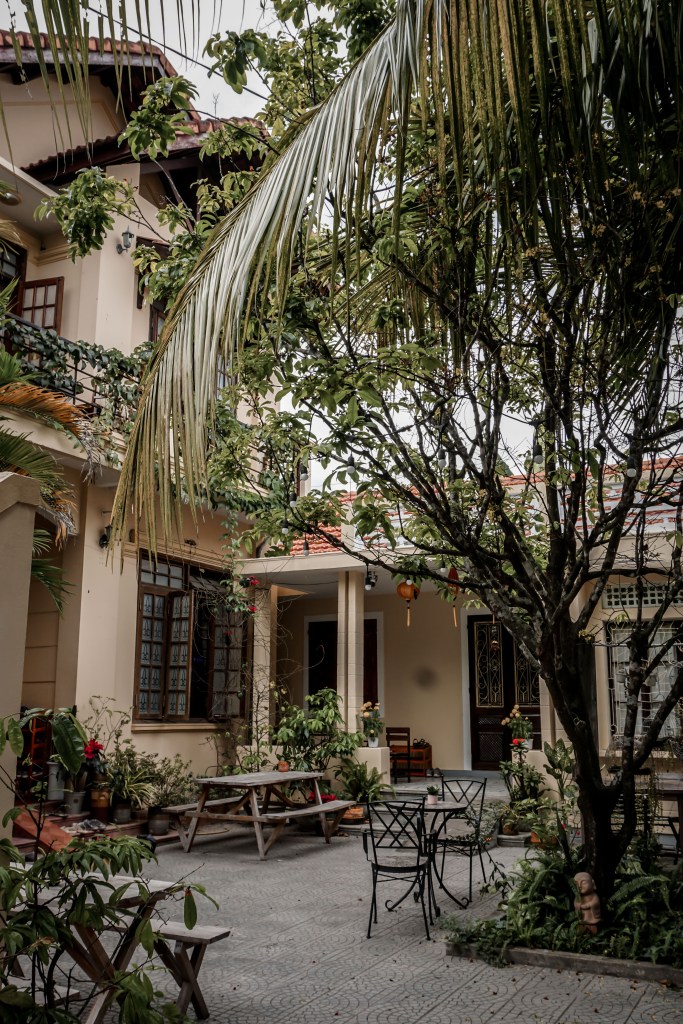Da wir Hue erst spät erreichen, bleibt nur noch Zeit für ein Abendessen. Trotz der etwa 340.000 Einwohner, werden hier die Bürgersteige zeitig hochgeklappt. Eine Pizzeria ist neben einigen Cafés noch die einzige Anlaufstelle für Menschen mit Hunger zur fortgeschrittenen Stunde. Unsere Unterkunft ist nett, der Garten dafür um so schöner. Das Zimmer teilen wir uns heute Abend leider mit einer Kakerlake. Während Jasmin quietschend auf dem Bett sitzt, erledigt Dominik das Tier heldenhaft mit dem Wurf eines Schuhs. Das Massaker wird mit Toilettenpapier abgedeckt, nur wer es nun anschließend beseitigen soll, wird stark diskutiert.